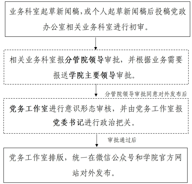 4. 审批通过后, 由党务工作室排版, 统一在微信公众号和学院官方网站对外发布。