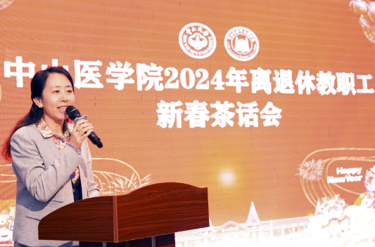 郝雅娟书记在开场时提到,来到中山医学院后深感责任重大、使命光荣,值此甲辰龙年新春佳节来临之际,有幸能够和学院的离退休老师们其乐融融地喜聚一堂、辞旧迎新,随后对各位前辈、老师的到来表示了诚挚的问候和由衷的感谢!