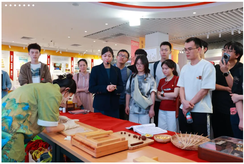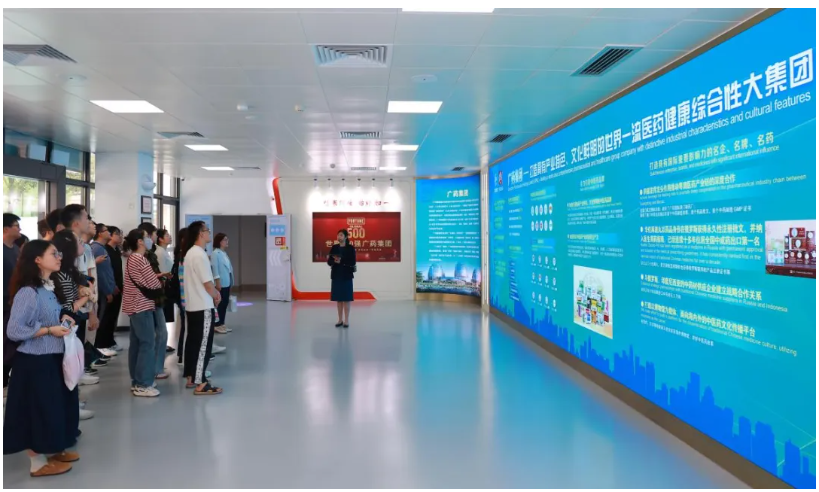 在企业代表带领下,师生们参观了DBgame展厅、智能化生产车间、综合制造部及党建长廊,现场体验了“中一安工牛黄丸制作技艺”非物质文化遗产项目。通过深入了解白云山中一药业360多年的发展历程、核心产品(如消渴丸、安宫牛黄丸等)及现代化制药工艺,师生们深切感受到老字号企业在高质量发展中焕发的新活力。