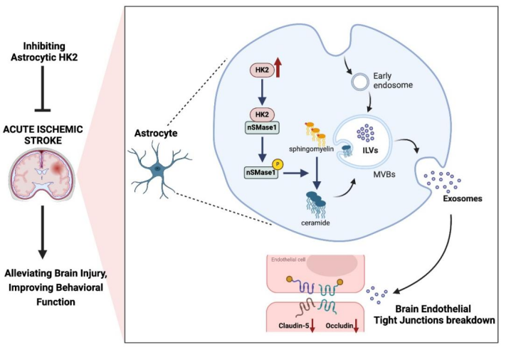 这项研究进一步明确了HK2在急性缺血性脑卒中过程中的关键损伤作用,证实了病理损伤环境下被诱导的HK2有望成为脑卒中治疗的全新靶点;同时,发现HK2通过蛋白激酶活性对外泌体(细胞间通讯的关键介质)生成的调控,这种非代谢功能的揭示也为探索HK2相关生理病理过程、外泌体等相关研究提供了全新的线索。