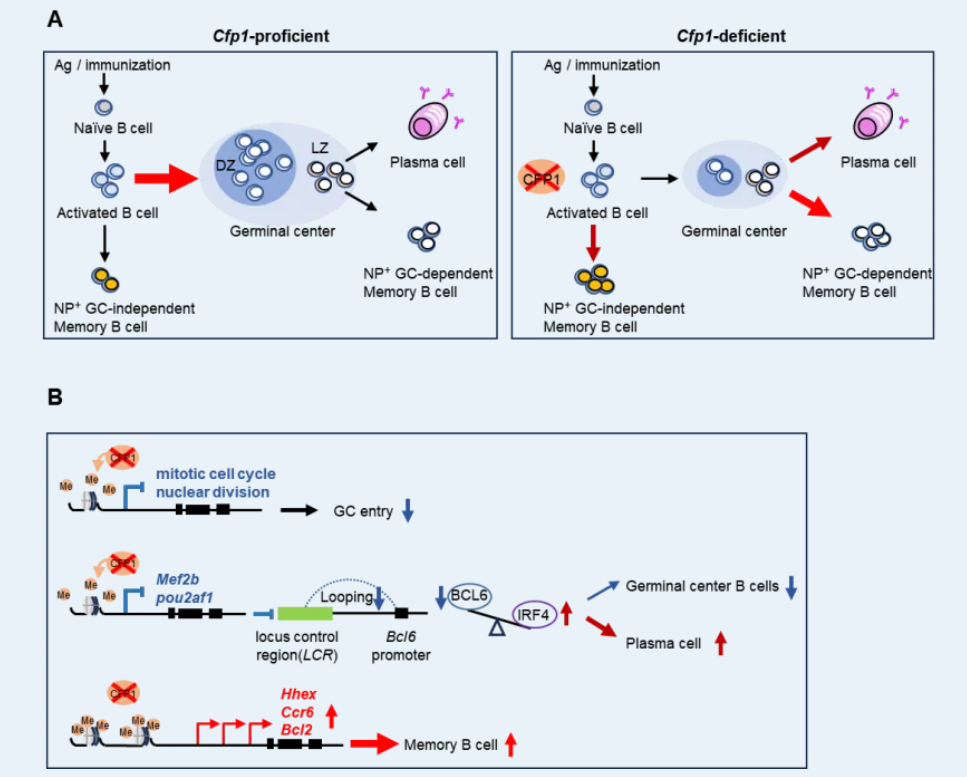 Nat Commun | 中山医学院董俊超教授团队发现组蛋白甲基转移酶组分CFP1调控B细胞生发中心命运走向的分子机制
