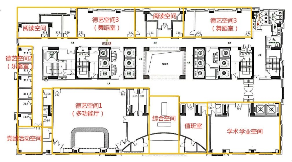 The second classroom activity space is equipped with reading space, moral and art space, caucus activity space, academic study space and other rich space, aiming to provide teachers and students in North Campus with a variety of venue services such as caucus construction, academic discussion, teachers and students exchange, leisure reading and so on.