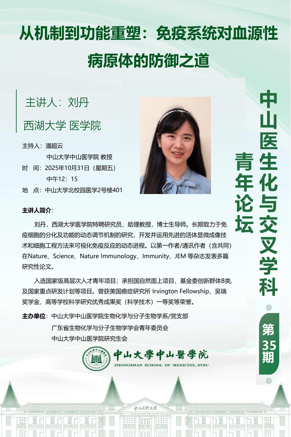 导航痕迹 DBgame 科学研究 学术讲座 中山医生化与交叉学科青年论坛|从机制到功能重塑:免疫系统对血源性病原体的防御之道 科学研究 科研通知 学术讲座 科研平台 办理指引 中山医生化与交叉学科青年论坛|从机制到功能重塑:免疫系统对血源性病原体的防御之道 从机制到功能重塑 发布人:张玉琦 发布日期:2025-10-27