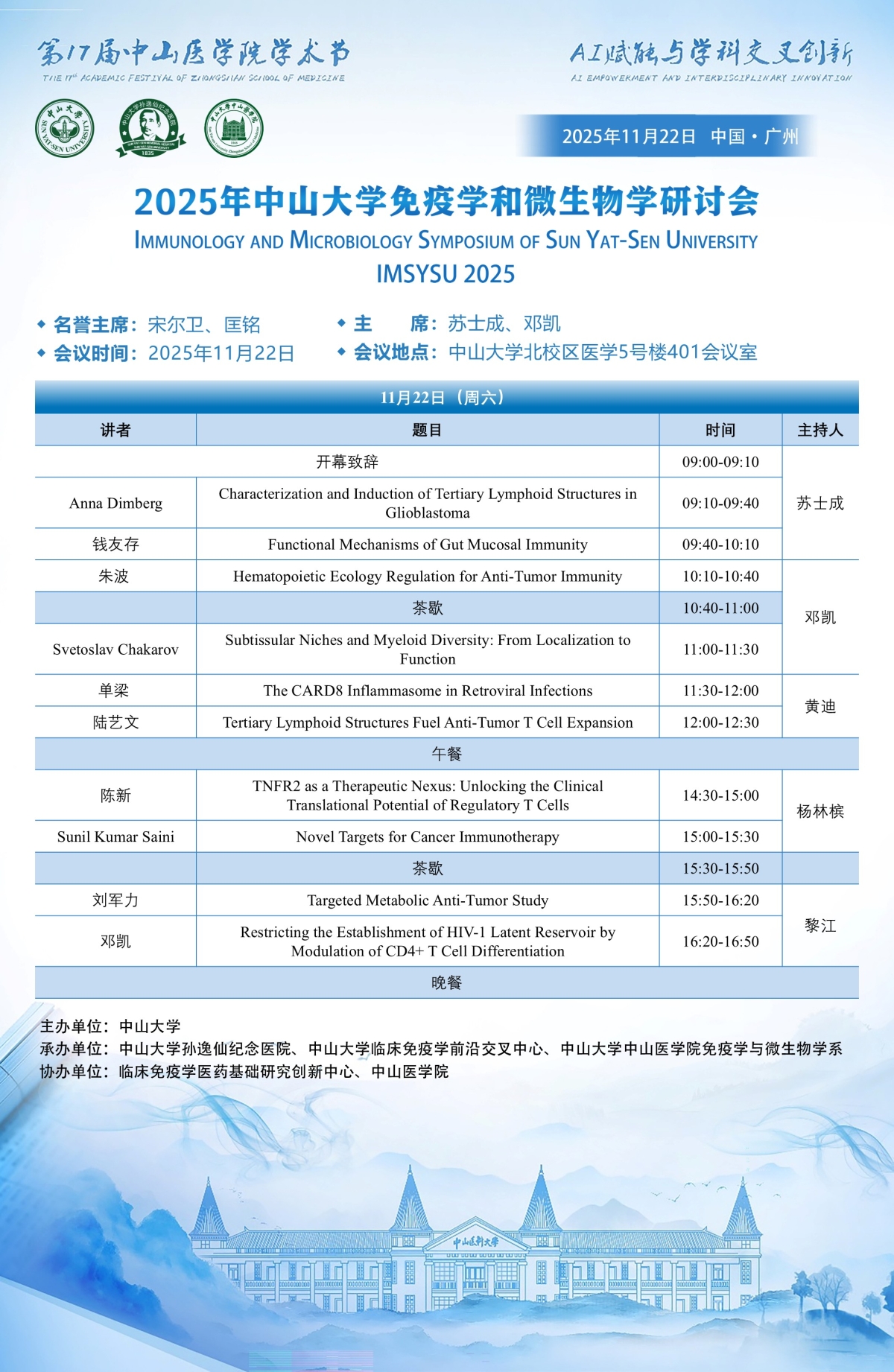 导航痕迹 DBgame 科学研究 学术讲座 2025年中山大学免疫学与微生物学研讨会(IMSYSU 2025) 科学研究 科研通知 学术讲座 科研平台 办理指引 2025年中山大学免疫学与微生物学研讨会(IMSYSU 2025) 发布人:张玉琦 发布日期:2025-11-20