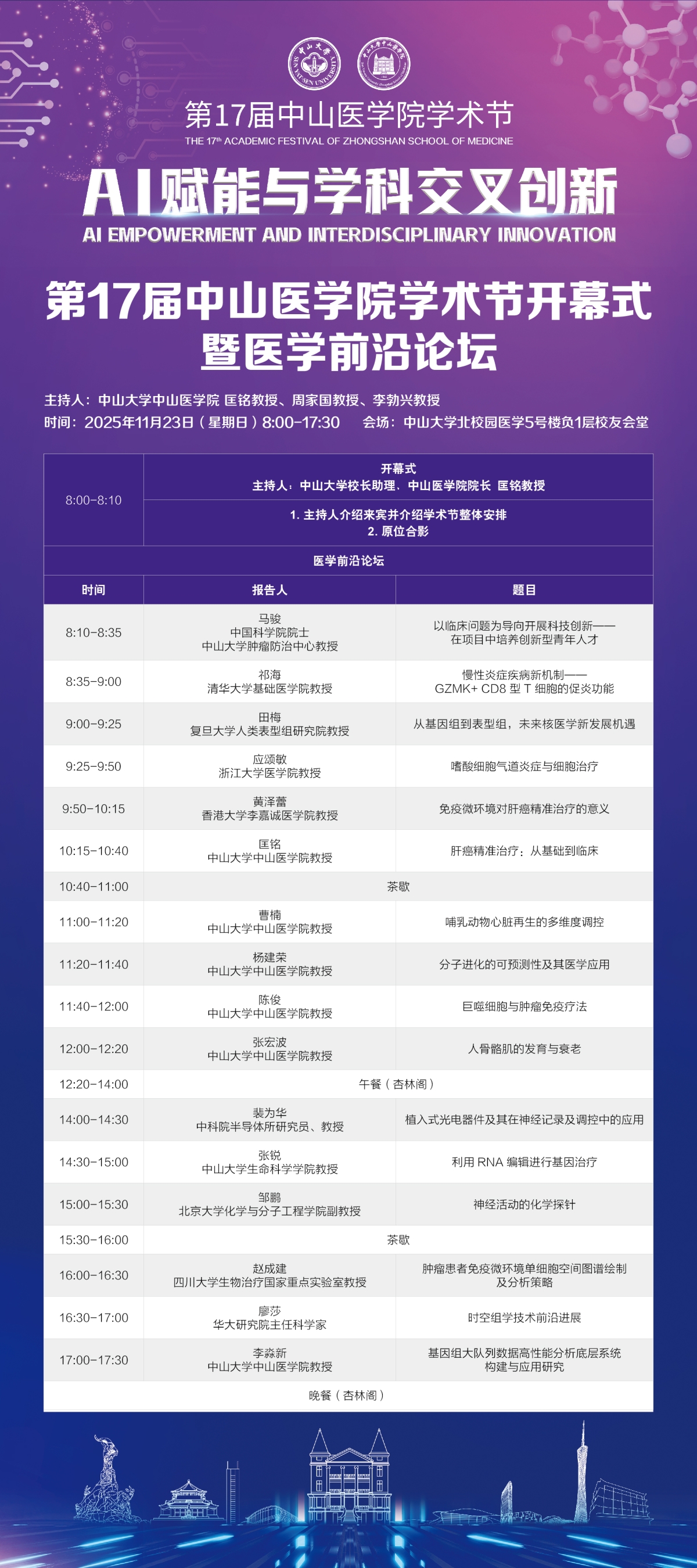 导航痕迹 DBgame 科学研究 学术讲座 第17届中山医学院学术节开幕式暨医学前沿论坛 科学研究 科研通知 学术讲座 科研平台 办理指引 第17届中山医学院学术节开幕式暨医学前沿论坛 发布人:张玉琦 发布日期:2025-11-20