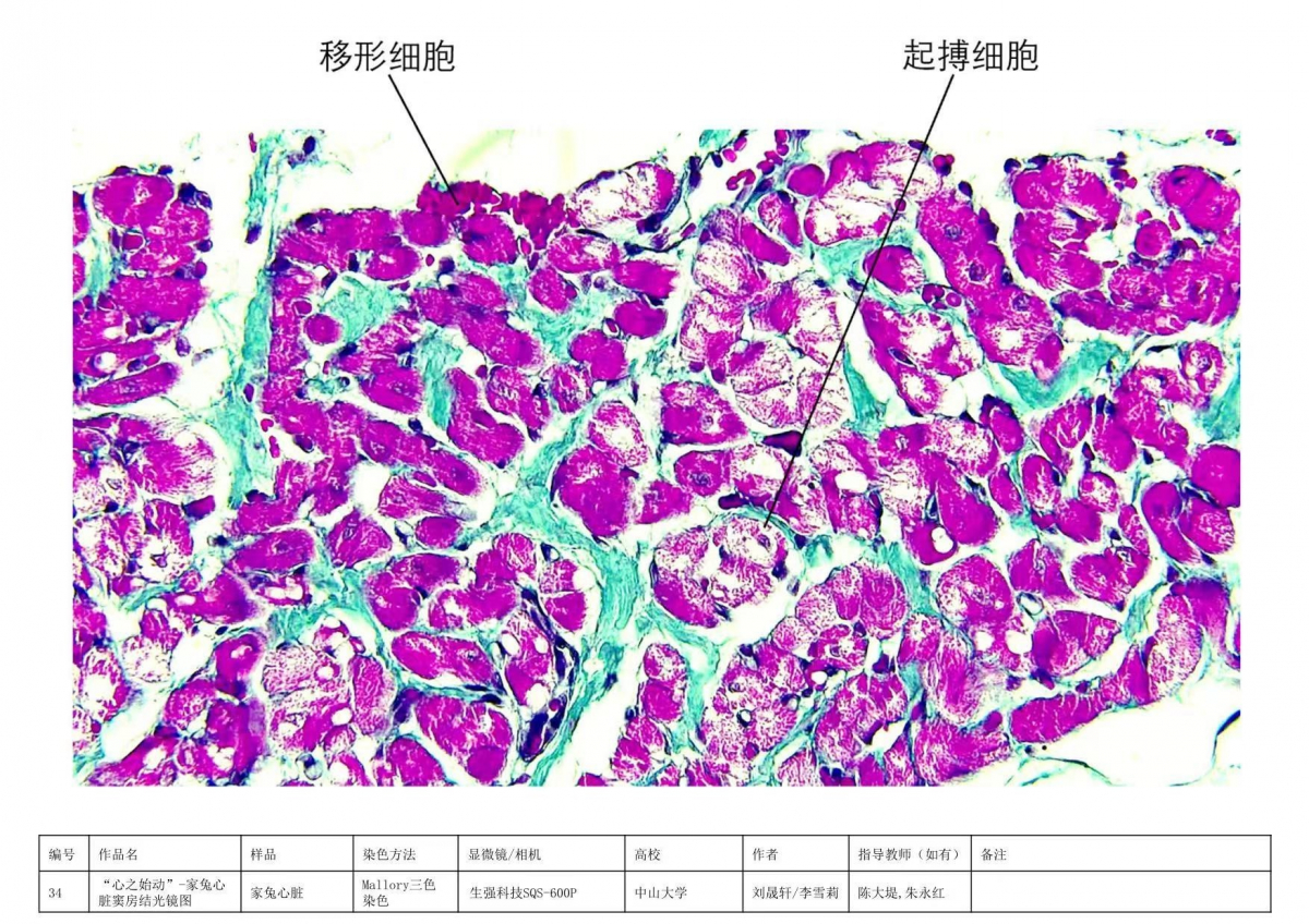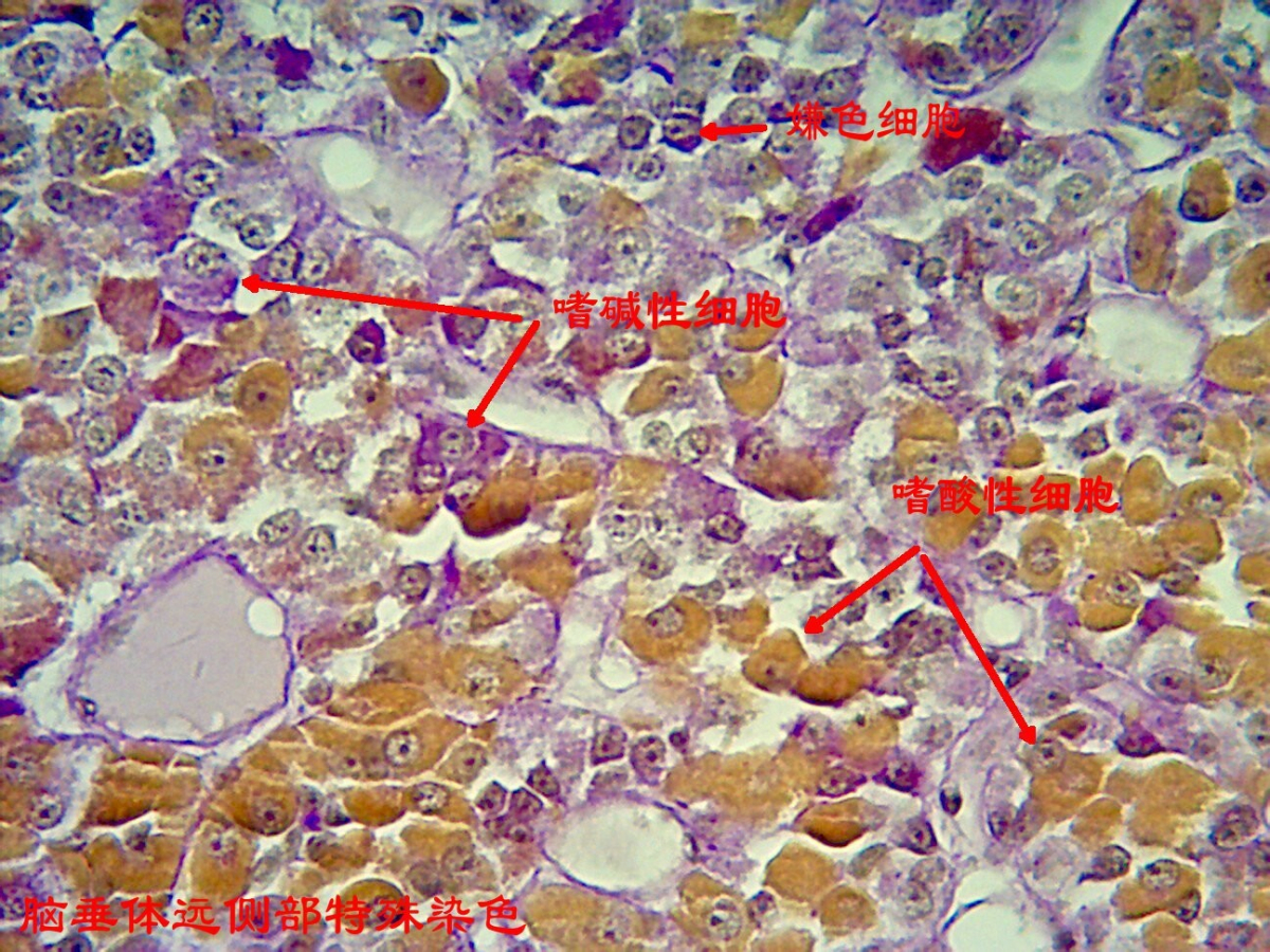 导航痕迹 DBgame 馆藏标本 组织学与胚胎学标本 馆藏标本 人体解剖学标本 组织学与胚胎学标本 病理学标本 人体手绘 微生物学标本 组织学与胚胎学标本 包括人体组织学和胚胎学的标本,根据人体的不同器官组织进行分类展示人体的内部结构,胚胎不同时期的发生发育的过程。 组织来源:猫;组织名称:脑垂体;染色方式:HE染色。本图片为低倍镜下猫脑垂体HE染色整体光镜图,脑垂体整体结构完整,无皱褶与裂痕,各层组织成分染色鲜艳、清晰。 组织来源:猫;组织名称:脑垂体;染色方式:高碘酸-无色品红-橙黄G染色。本图片为高倍镜下猫脑垂体高碘酸-无色品红-橙黄G染色光镜图,其中,嗜酸性细胞胞质内颗粒呈橙黄色,嗜碱性细胞胞质内颗粒呈红紫色,嫌色细胞胞质呈浅灰蓝色或无色,胞核呈蓝褐色,红细胞呈鲜橙黄色。 组织来源:兔;组织名称:心脏窦房结;染色方式:mallory三色染色法。本图为家兔心脏窦房结mallory三色染色光镜图,显示胶原纤维、神经纤维呈亮绿色,心肌纤维呈红色,细胞核呈蓝黑色,且能清晰显示窦房结起搏细胞和移行细胞。 组织来源:狗;组织名称:气官;染色方式:HE染色。本图片为低倍镜下狗气管HE染色整体光镜图,气管整体结构完整,无皱褶与裂痕,各层组织成分染色鲜艳、清晰。 组织来源:狗;组织名称:气官;染色方式:HE染色。本图片为高倍镜下狗气管HE染色黏膜与黏膜下层部分光镜图,黏膜层细胞结构典型、可见纤毛细胞、杯状细胞及其它各种细胞,粘模下层胶原纤维等染成红色,周边有成纤维细胞等。 组织来源:小鼠;组织名称:胰腺;染色方式:改良醛品红- 丽春红法染色法。本图片为高倍镜下小鼠胰腺组织胰岛细胞改良醛品红- 丽春红法染色光镜图,其中,A细胞呈朱红色;B细胞呈紫蓝色;D细胞、胶原纤维呈淡绿色。无共染且颜色鲜明,层次清楚,结构清晰,易于观察。